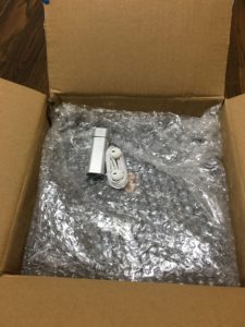 箱の中はこんな感じです。Macと違って、箱を開けたら黒い紙で覆われていていきなり製品とご対面、ではありませんでした。写真は覆う紙を外したものです。
